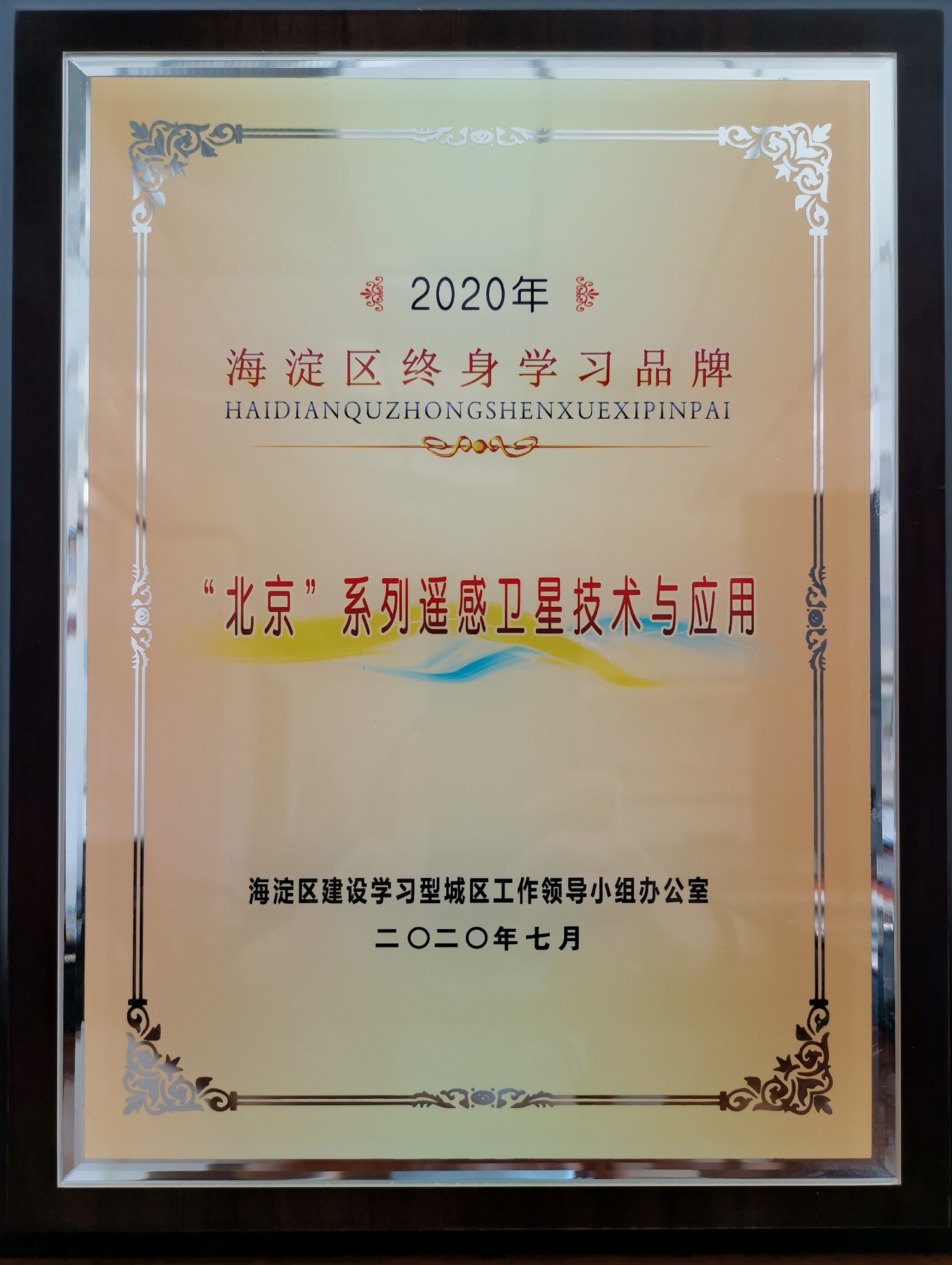 11月27日,在2020年“海淀区终身学习品牌”“海淀学习之星”表彰活动中,我公司 “北京”系列遥感卫星技术与应用被评为2020年海淀区终身学习品牌。