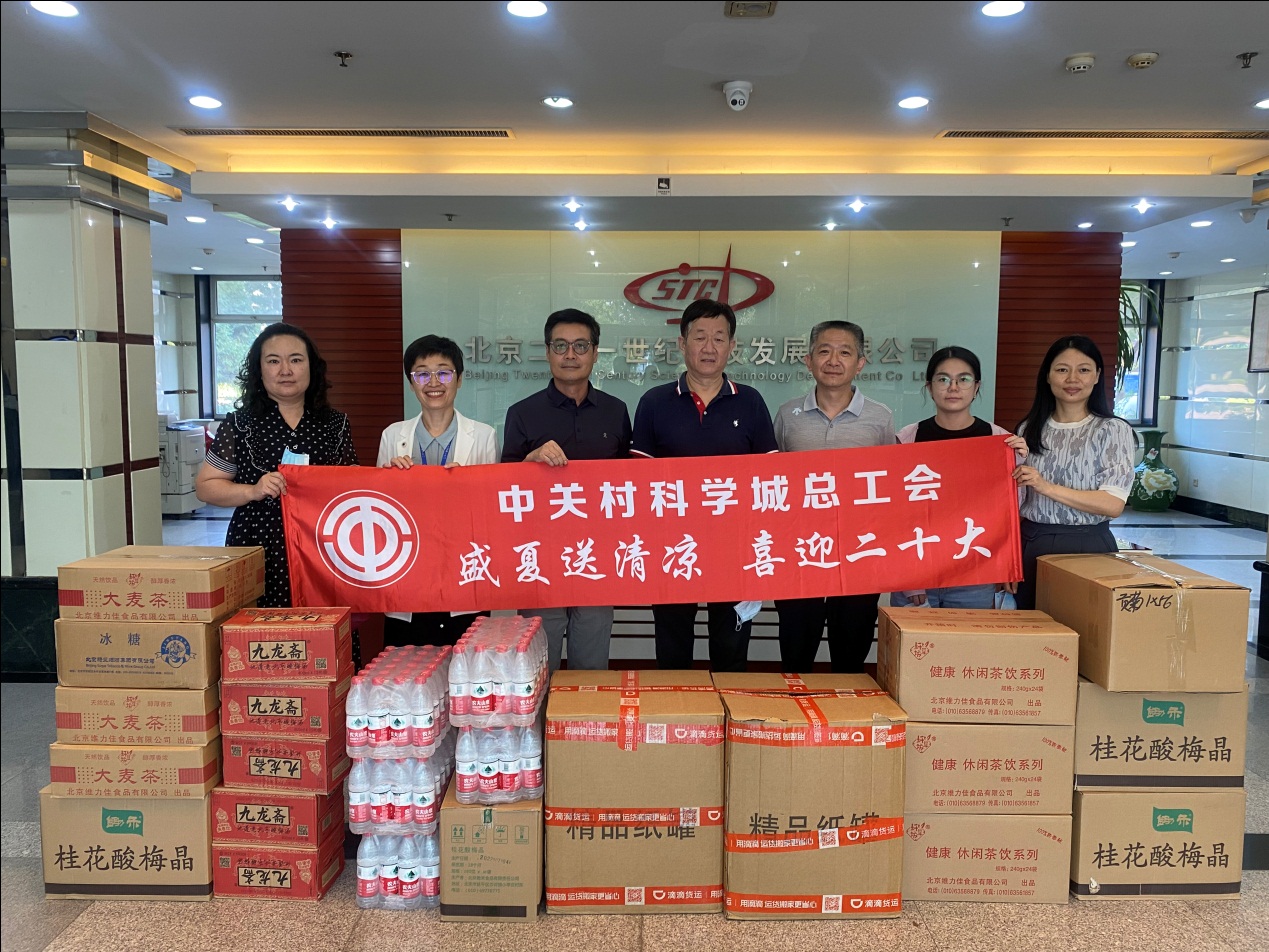 7月21日,中关村科学城总工会王晖主席、钟翎部长一行5人莅临我公司开展“盛夏送清凉 喜迎二十大”慰问活动,在炎炎夏日为公司广大员工带来了茶叶、酸梅汤、矿泉水等防暑降温慰问饮品。公司工会主席吴凡等公司领导热情接待,并代表广大员工向各位到访领导表示衷心感谢。