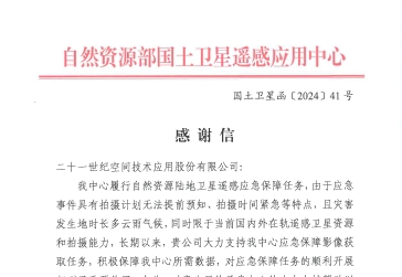 2024年2月6日,自然资源部国土卫星遥感应用中心向世纪空间发来感谢信,对公司一直以来给予自然资源部国土卫星遥感应用中心应急保障工作的大力支持表示敬意和感谢。 未来,世纪空间将继续发挥北京系列三代卫星数据资源与技术优势,不断创新提升卫星遥感技术应...