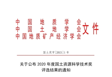 日前,中国地质学会、中国土地学会、中国地质矿产经济学会联合公布了2020年度国土资源科学技术奖71项获奖成果。由中国国土勘测规划院牵头、我公司等5家单位共同申报的“高分辨率卫星遥感土地调查监测技术与应用”成果,喜获2020年度国土资源科学技术奖一等奖。 ...